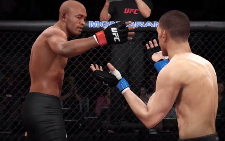 Simulação de A. Silva (esq.) x N. Diaz (dir.) no game EASports UFC. Foto: Reprodução/YouTube Uma das grandes marcas de Anderson Silva dentro do octógono é seu estilo provocador, no qual o brasileiro faz uso de brincadeiras e jogos mentais para desestruturar seus adversários. Para muitos, a estratégia foi por água abaixo nas duas derrotas do ex-campeão para Chris Weidman e deveria ser repensada. No entanto, se depender da produtora “Eletronic Arts”, responsável pelo jogo oficial do UFC, podemos esperar um Anderson intimidador quanto antes em seu retorno contra Nick Diaz, marcado para janeiro de 2015. Em vídeo divulgado em seu canal oficial do YouTube para promover a adição de novos lutadores ao plantel do game “EA Sports UFC”, a produtora incluiu trechos de uma simulação da luta entre Nick Diaz, agora disponível na categoria peso médio do jogo, e Anderson Silva. Nas imagens, Anderson aparece com a guarda baixa e chamando Diaz para cima, em cena que lembra muito o segundo assalto de sua primeira luta contra Chris Weidman. Além do trecho do duelo entre Anderson Silva e Nick Diaz, o vídeo divulgado também mostra imagens do peso médio Tim Kennedy e do peso meio-médio Gunnar Nelson, também incluídos no elenco de atletas do game. Tanto Diaz quanto Kennedy e Nelson estarão disponíveis gratuitamente via download nos próximos dias. Lançado em junho deste ano, o jogo “EA Sports UFC” está disponível somente para Playstation 4 e Xbox One. Assista abaixo ao vídeo do game EA Sports UFC com Anderson Silva x Nick Diaz: