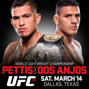 Daniel Cormier terá ajuda de Steven Seagal para luta contra Jon Jones Por sua vez, Pettis, que tem um histórico profissional de 18 vitórias e duas derrotas, fará sua segunda defesa de cinturão no UFC. Na primeira ocasião com o título em jogo, ele finalizou Gilbert Melendez, no UFC 181, em dezembro. Na primeira vez que um brasileiro disputou o cinturão dos leves do UFC, Hermes França encarou Sean Shark no UFC 73, em julho de 2007 e foi dominado por cinco rounds e perdeu na decisão unânime dos juízes.