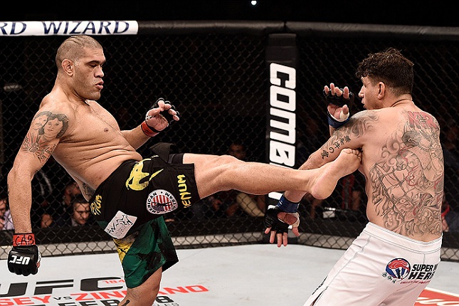 Pezão (esq.) e F. Mir (dir.) fizeram a luta principal do UFC POA. Foto: Josh Hedges/UFC Em tempos conturbados no que diz respeito ao consumo de substâncias proibidas no esporte, todos os atletas que participaram de um evento serem testados e passarem ilesos pelo exame antidoping é uma notícia e tanto. E foi exatamente o que aconteceu no UFC Fight Night 61, realizado no último dia 22 de fevereiro na capital gaúcha Porto Alegre e encabeçado pela vitória .