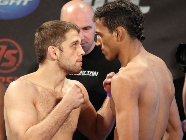 Lentz (esq.) e Do Bronx (dir.) em seu primeiro duelo, em 2011. Foto: Josh Hedges/UFC A volta do UFC a Goiânia, agendada para o dia 30 de maio, trará ao brasileiro Charles do Bronx a chance de ter sua tão aguardada revanche contra o norte-americano Nik Lentz. A reedição do duelo aconteceria em setembro do ano passado, mas Charles se sentiu mal pouco antes da pesagem oficial e acabou cortado da luta na última hora.