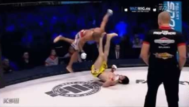 Belfort e Johnson aparecem como azarões nas casas de apostas para o UFC 187 O “Showtime Kick” de Anthony Pettis, golpe no qual o ex-campeão do WEC e UFC caminhou pela grade antes de acertar em cheio o rosto de Ben Henderson, está marcado na história do MMA. Por isso mesmo, volta e meia o chute é alvo de imitações, nem sempre bem sucedidas. E foi exatamente isso que aconteceu no evento polonês KSW. O lutador angolano Helson Henriques tentou se aproveitar que seu adversário, o atleta da casa Anzor Azhiev, estava caído para pegar impulso na grade, ao melhor estilo “Showtime”, e tentar um superman punch. Porém, Helson acabou surpreendido com uma pedalada certeira de Azhiev e acabou levando a pior. O combate entre eles, no entanto, não foi definido neste momento, nem em qualquer outro durante os 15 minutos regulamentares, com o polonês na decisão dos juízes.