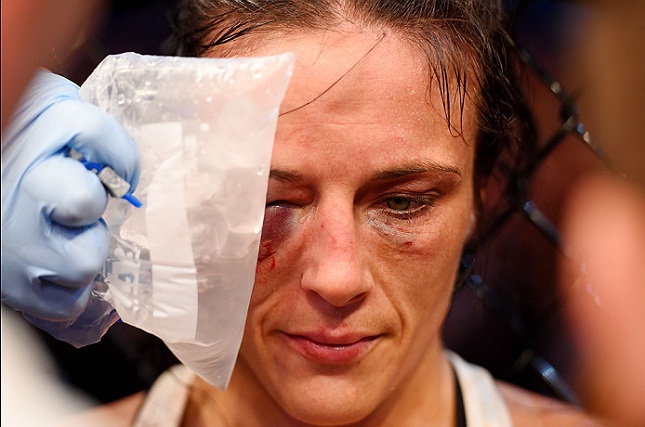 Vídeo reúne outros chutes arrasadores de Holm No comando do UFC nos últimos 15 anos, o presidente Dana White já viu praticamente de tudo tanto no octógono quanto nos bastidores da maior organização de MMA do planeta. Agora imagine uma lesão visualmente tão impactante a ponto do dirigente classificá-la como a “coisa mais absurda” que já viu? Pois essa foi a definição de Dana ao comentar a contusão que desfigurou o rosto da desafiante Valerie Letourneau, derrotada por Joanna Jedrzejczyk na luta co-principal do UFC 193. “Eu fui para o hospital após o evento, a Joanna Jedrzejczyk estava lá, a Ronda Rousey também e a Valerie Letourneau. Eu estava andando de um quarto para o outro pensando: ‘Jesus Cristo! Esse ramo de negócios é insano! É tão maluco… olhe para essas garotas’. O olho da Valerie Letourneau foi a coisa mais absurdas que eu já vi na vida. Estava muito feio. Eu perguntei a ela como estava sua perna e ela me mostrou como estava. Estou te dizendo, ela realmente estava destruída nesse momento”, contou White, em entrevista ao podcast do comentarista Joe Rogan. O dirigente, aliás, aproveitou para elogiar a bravura da canadense, que, apesar da grave contusão no rosto, vendeu a derrota caro e perdeu somente por pontos. “No UFC, nós sempre acreditamos na Valerie Letourneau. Ela é grande e forte para a divisão e, agora, ela deve ir, pelo menos para a sexta posição no ranking. Na nossa opinião, ela não deveria estar na oitava posição. Valerie é melhor do que número oito e provou isso. Só que a Joanna é um monstro”, garantiu. O desejo de Dana White parece ter sido atendido e Valerie Letourneau subiu justamente para a sexta posição no ranking peso palha. A canadense, de 32 anos, agora possui um cartel profissional de oito vitórias e quatro derrotas.
